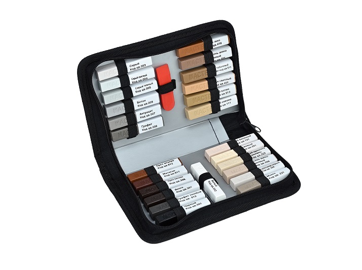 Для получения точного оттенка взять воск 2-3 цветов подходящего тона и смешать их между собой при помощи газового или аккумуляторного воскоплавителя на стекле или прозрачном пластике, предварительно положив его, для точного колерования, на ремонтируемую поверхность.